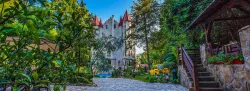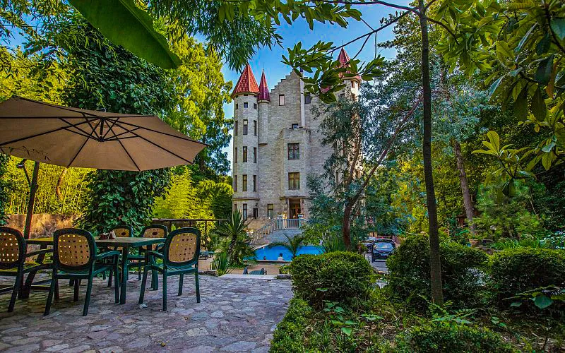 Увидели на сайте красивый отель в виде замка, виллу «Анну» в Сочи, и решили там взять номер. По приезду также понравилось и само месторасположение отеля. Практически в центре Сочи, рядом с Дендрарием. По утрам просыпались от криков павлина, это было чудесно. Вкусные завтраки на открытом воздухе добавляли романтики. В меню всегда присутствует молочная каша, также предлагают яичницу, блинчики с различной начинкой. При желании можно ещё добавить за отдельную плату обеды и ужины. Но мы много гуляли, ездили в соседние районы Большого Сочи, поэтому такой необходимости у нас не возникало. Номера здесь очень уютные, просторные. Всё, что необходимо, внутри есть. Шумоизоляция, никого вокруг не слышно, а может нам просто попались спокойные соседи. Но в любом случае нам в этом повезло.