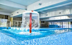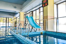 Отдых в санатории «Вороново» в Подмосковье однозначно оценят все гости, так как здесь построен современный аквацентр с зонами для детей и взрослых. В водный комплекс входит подогреваемый бассейн с комфортной температурой от 32 градусов, имеющий удобную глубину для отдыхающих всех возрастов. Для детей обустроена отдельная мелкая дорожка и горка для весёлого спуска в воду. Длина бассейна составляет 25 метров, что позволяет вместить большое число людей одновременно.