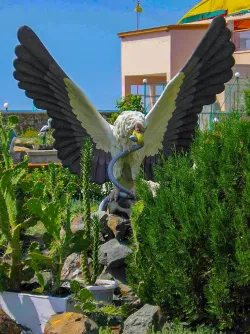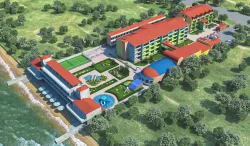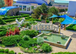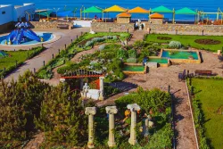 Заведение расположено в экологически чистом районе, окруженном природными ландшафтами. Территория включает собственный пляж, парковую зону с дендропарком, каскадные водоемы и фонтаны. Это создает идеальные условия для прогулок и релаксации на свежем воздухе. Здесь также есть уникальный бассейн с минеральной водой и подогревом, что позволяет не только наслаждаться плаванием в любое время года, но и избавиться от множества симптомов хронических заболеваний.
