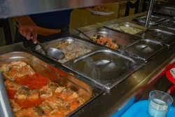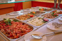 Пансионат «Южная ночь» г. Сочи предоставляет гостям комплексное 3-разовое питание. Приёмы пищи проходят в обеденном зале здравницы. Вместимость столовой позволяет одновременно находиться за столами 150 отдыхающим. Рацион всегда включает свежие овощи и фрукты, молочные и кисломолочные продукты, мясные и рыбные блюда. Также в столовой предлагается свежая выпечка. Всё меню готовится на территории пансионата профессиональными поварами здравницы.