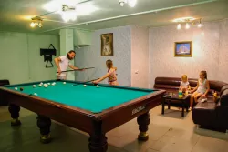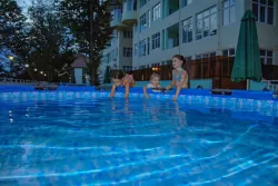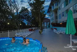 Для отдыхающих в пансионате «Южная ночь» г. Сочи организовано несколько направлений досуга. На территории здравницы действует два бассейна с пресной водой. Если спуск к морю вам покажется неудобным в один из дней, вы сможете провести время, загорая у бассейна. В одном из корпусов пансионата находится бильярдная, в помещении также установлены столы для настольного тенниса.
