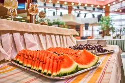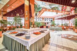 Ресторан Центральный радует гостей красивой новой, стильной, современной столовой мебелью, всегда свежими продуктами, разнообразными, многочисленными блюдами на идеально сервированных столах. Также провести прекрасно время предлагается в 5-ти барах пансионата Звездный, Фито, Диско, Зимний сад и Бильярдный.