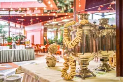 При совпадении дат и при желании отдыхающих отметить день рождения, провести корпоративное мероприятие, конференцию, семинар, презентацию, юбилей, и другие значимые даты в своей жизни, пансионат «Заря» располагает просторным / на 100 мест/, великолепно оформленным, современным банкетным залом с ВАЙ-ФАЙ и экраном.