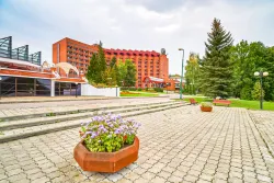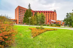 Территория санатория большая и благоустроенная. Корпуса комплекса соединены теплым переходом с корпусом, где находится главный ресторан, бары и кафе, спортивно-культурный центр и клиника, круглогодичный, крытый плавательный бассейн с четырьмя дорожками и горками. В пансионате есть все возможности для организации корпоративных мероприятий: конференций, тренингов, мастер-классов.
