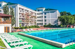 - На территории пансионат в летнее время функционирует открытый бассейн.