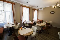 Питание в пансионате «Звёздный» г. Кисловодск организовано по принципу шведского стола на завтрак и меню-заказа на обед и ужин. Для этого действует собственная кухня и выделено помещение под обеденный зал. Летом вы сможете пообедать на веранде пансионата. Дети в «Звёздном» питаются по специальному детскому меню. Для приготовления блюд используются преимущественно продукты местного производства, что помогает сохранять максимум питательных свойств пищи.